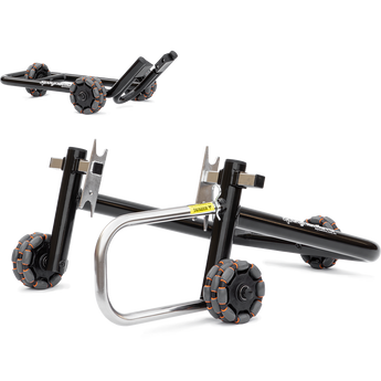 Single-sided Rear Stand: Fits bikes with a single-sided swingarm and a large central hollow in the rear wheel hub. Interchangeable spindles easily adapted for different brands of bike: BMW, Ducati, MV Agusta, Honda, KTM, Triumph.